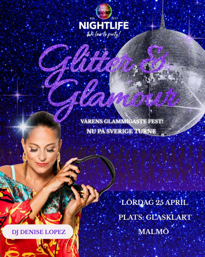 På dansgolvet bjuder DJ Denise Lopez på en oslagbar mix av de bästa hitsen från 70-, 80- och 90-talet, blandat med dagens favoriter. Klä dig gärna i glitter & glamour! (Frivilligt)